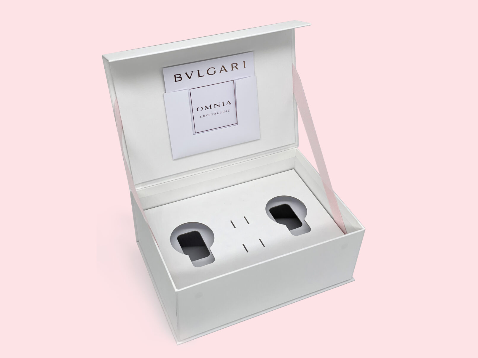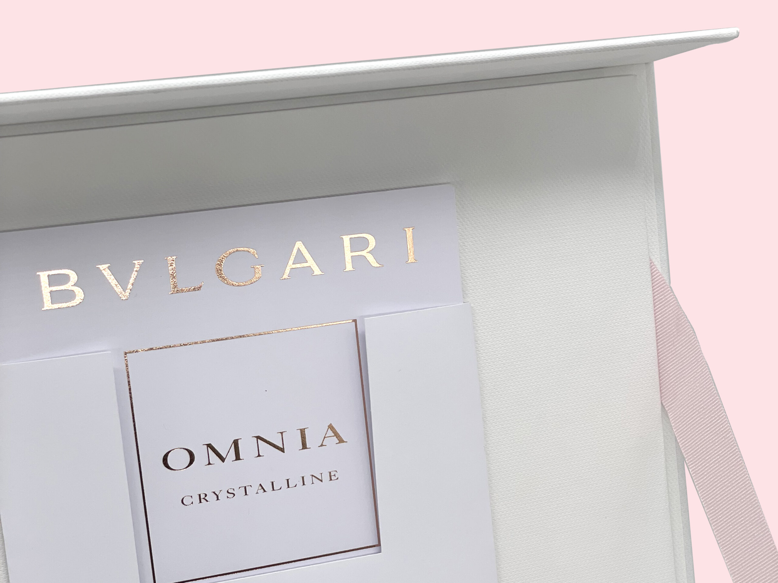 Boîte de luxe – Effet texturé – Ruban pour ouvrir le coffret – Marquage à chaud Or Rose – Fermeture avec rabat aimanté