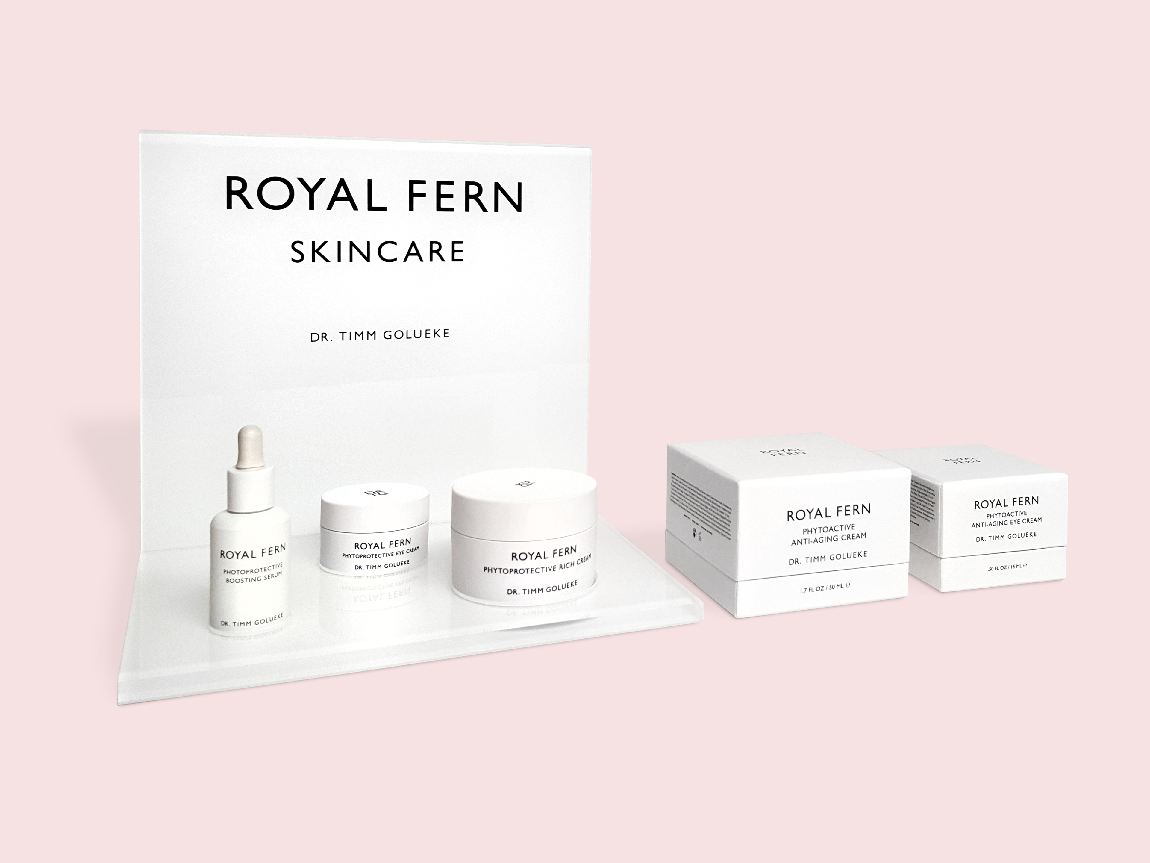 – Komplettes Produktsortiment aus einer Hand – Hochwertiges Acryl-Display – Sortiment an Cremetiegeln und Serum-Fläschchen – Tiegel und Umverpackungen mit Logo-Druck und Softtouch Laminierung